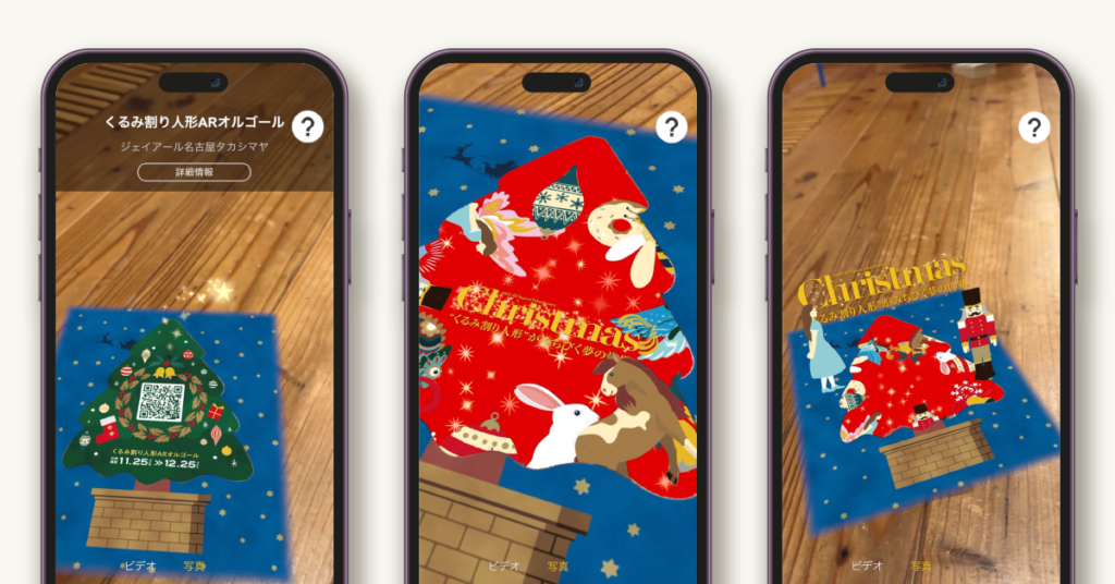- 音の演出: ARコンテンツと同時に、心温まる「くるみ割り人形」のオルゴール曲が流れ出し、視覚と聴覚の両方から没入感のあるクリスマスの世界を提供します。